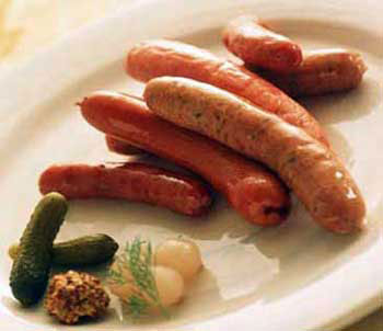 沧县崔尔庄村的丁氏香肠起源于清雍正年间(1723~l736),是丁氏独家祖传绝艺。丁氏香肠又名奇美香肠,相传系乾隆皇帝下江南路过沧州品尝而得名。丁氏香肠用料考究,制作精细,风味独特,营养丰富。用羊肠制成肠衣,原料主要为瘦猪肉,再按比例加入肉寇、草寇、子寇、肉桂、砂仁、桂皮、广料、香油、鲜姜、食盐等十多种佐料,近代又加入味精,调制而成。年产二千四百余斤。产品以销本地为主,也远销天津、北京、石家庄、南京以及新疆等地。