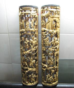 金漆木雕 gold and lacquer wood carving庙宇建筑中,随处可见栩栩如生的木雕工艺,往往带有故事性,蕴含发人省思的意义;而供人祭拜的神像,也常是木头雕刻,甚至贴上金箔以显示尊贵以樟木为主要原料进行雕刻,并在其上髹漆、贴金的木雕。具有金碧辉煌的艺术效果。因主要产于广东潮州,故又称潮州金漆木雕,简称潮州木雕。