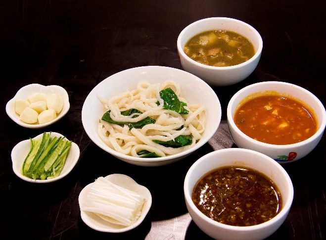 “头脑”是山西特有的一种清真小吃,为汤状食品。在一碗汤糊里,放上三大块肥羊肉,一块莲菜,一条长山药。汤里的佐料有黄酒、酒糟和黄芪。品尝时可以感到酒、药和羊肉的混合香味,味美可口,越吃越香。