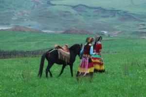 海塔西南角雄峰,有一山峦如天鹅俯卧。赫色峭崖似天鹅巨嘴,翠翼下,无数座浑圆的小丘似天鹅孵着的巨卵。