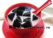 龟苓膏以鹰嘴龟、土茯苓、生地、蒲公英、银花的药材做出的中药冰品,因为味苦,不少店家还在其中加入甜甜的红豆沙,使这款中药也有了甜品的味道。香港天气炎热,吃龟苓膏来清热解毒是很流行的方式。