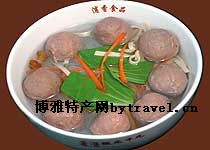 香港牛肉丸以筋道多汁闻名,咬劲十足,在周星驰的电影《食神》被夸张到可以用来当乒乓球打。传说清顺治年间,江南王家精心研制出了特色牛丸,后王家后人辗转来到香港,牛丸也就成了香港的名小吃,甚至得到英国女王的喜爱,也称“贡丸”。牛肉丸一般与河粉一起煮食,也可以用虾仁、腰果等配料烹熘,或是佐以鹌鹑蛋、芙蓉球一起油炸,吃起来外酥里嫩,甜润可口。