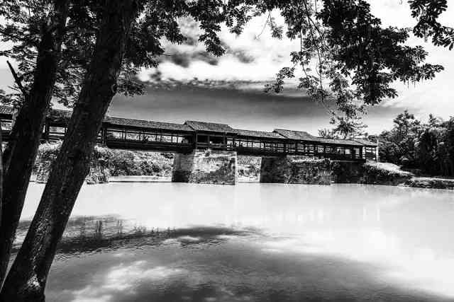 彩虹桥,建于南宋时期,是婺源廊桥的代表之作,距今已有八百多年的历史,据说是古徽州最古老也是最长的廊桥,黑白镜头下看古桥更有古韵!