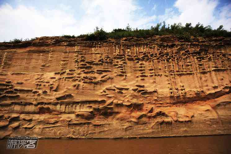 黄河画廊位于晋陕黄河大峡谷碛口段,是世界上珍贵的自然遗产,形成于三叠纪,由地下水溶蚀与河流冲蚀作用复合于三叠系厚层砂岩而形成的天然崖壁浮雕。