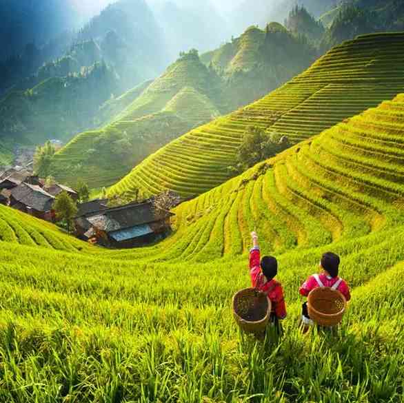 秋天是收割的季节,金色的稻浪洋溢着丰收的喜悦。龙脊梯田种植的稻子产出的大米非常香,很多的游客来到这里都会饭量大增!而自给自足的少数民族,很少将这些大米卖到城里,最好吃的都留给自己的亲人。