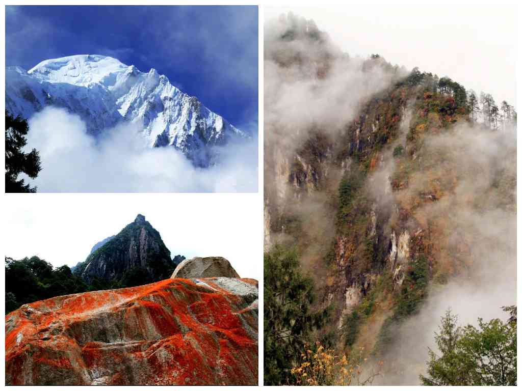 贡嘎山海拔7,556米,被喻为“蜀山之王”。主峰由花岗闪长岩组成,有着多样的植被和自然生态环境,山间蜿蜒两条姐妹峡谷:燕子沟和海螺沟,都是观看贡嘎主峰的绝佳地方。