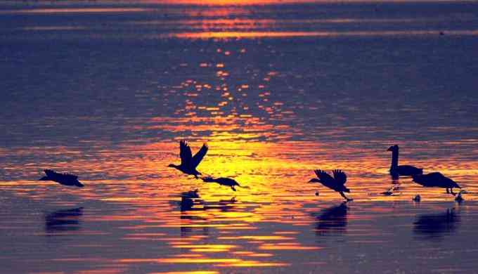 在浑善达克沙地的达里诺尔湖是一个封闭式的半咸水湖,这里被称为“百鸟乐园”,数量最多的白天鹅起若飘飘仙子,荡如晴天铺素,溅落游弋。