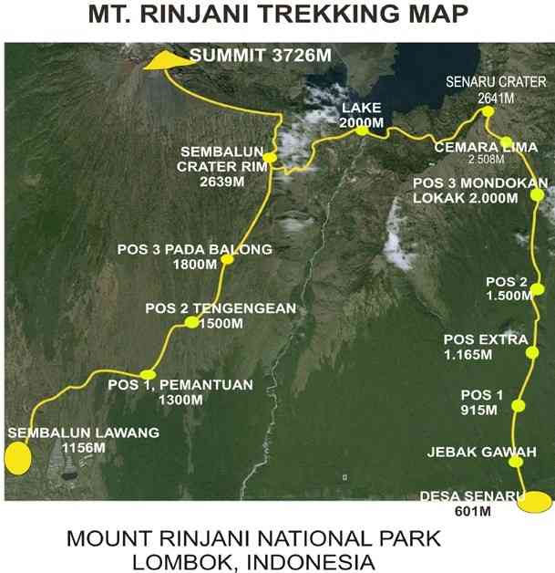 登林贾尼火山,一般有两条线路,一条是从东边的Sembalun村落出发,还有一条是从西面的Senaru村落出发,Sembalun 村海拔1100 m,比Senaru 村高出500 m。
