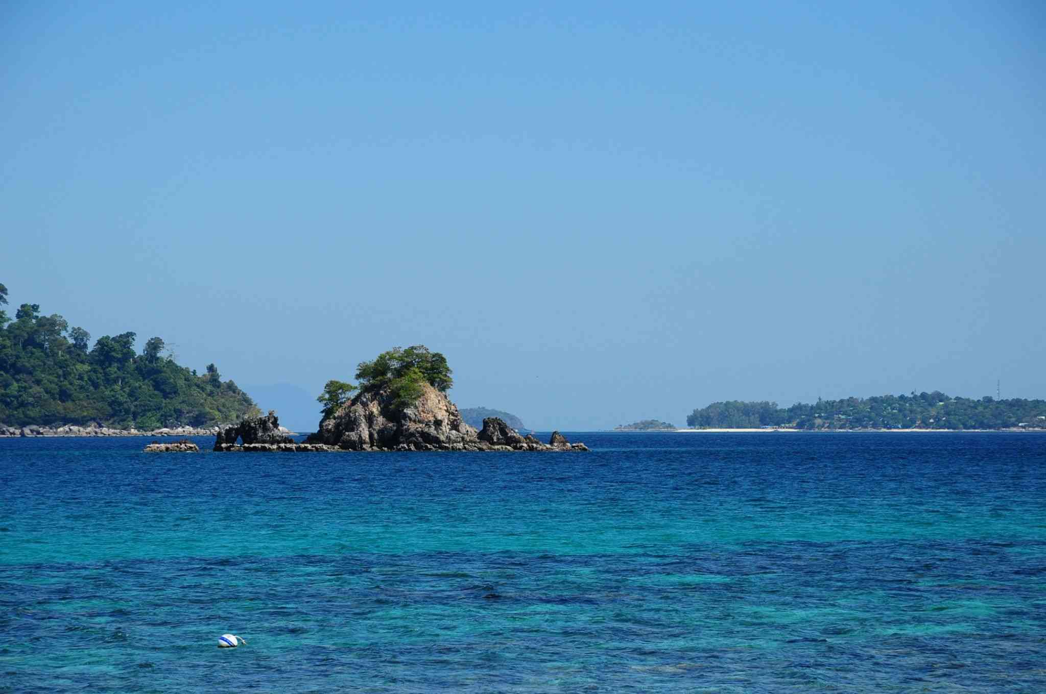 甲米的海并不是一望无际的,时常可以看到近前大大小小的岛屿,小岛附近的海水呈绿色,然后依次是浅蓝、水蓝、深蓝,逐渐递进。
