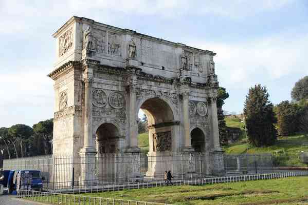君士坦丁凯旋门位于斗兽场和废墟之间,为纪念君士坦丁一世312年米里维桥战役的胜利而修建,是罗马现存凯旋门中最新的一座。据说拿破仑就是看了这个凯旋门,以此为蓝本在巴黎起了后来世界闻名的凯旋门!